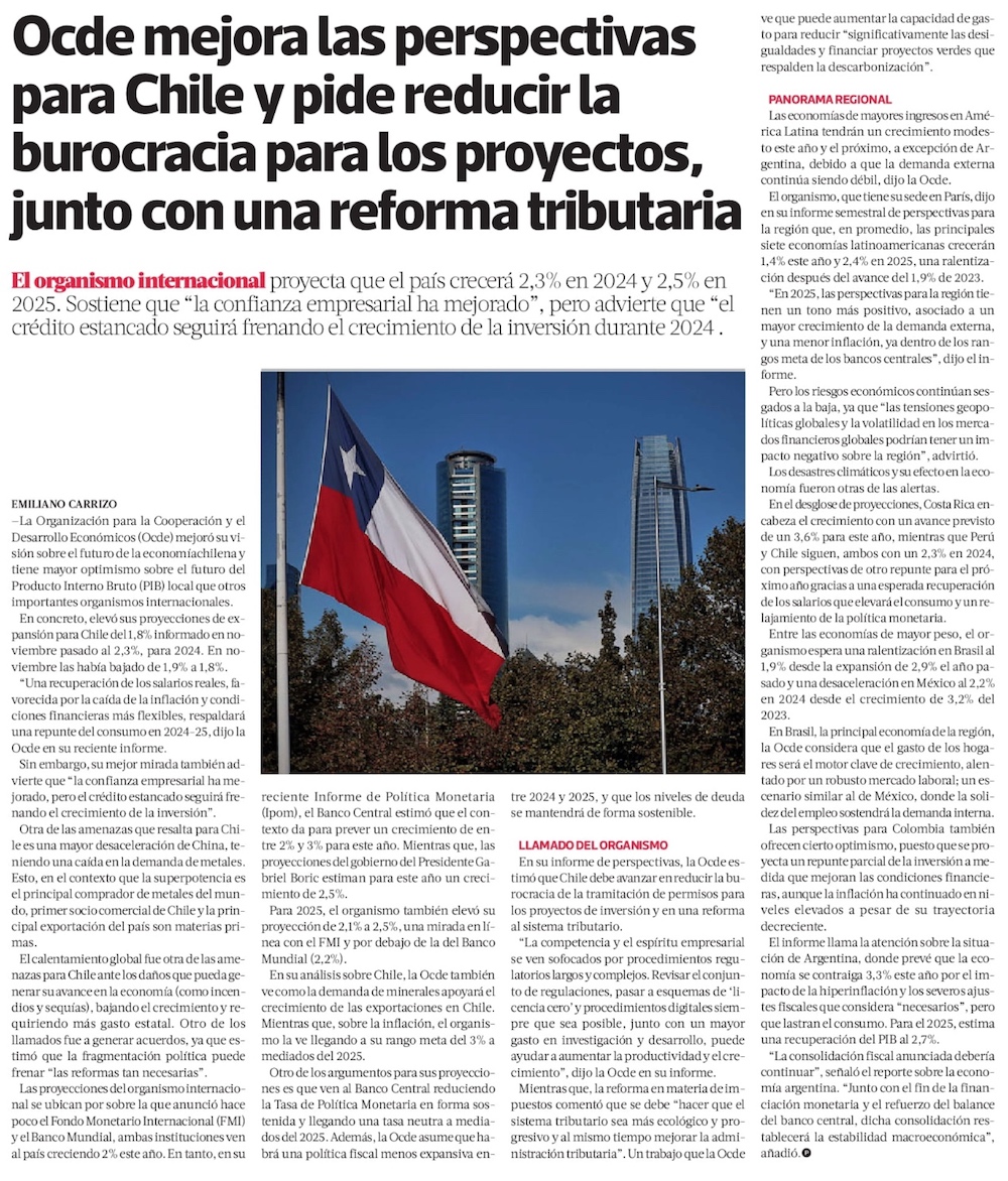 OCDE advierte que estancamiento del crédito frenará la inversión en Chile durante este año - (El Mercurio de Santiago)
