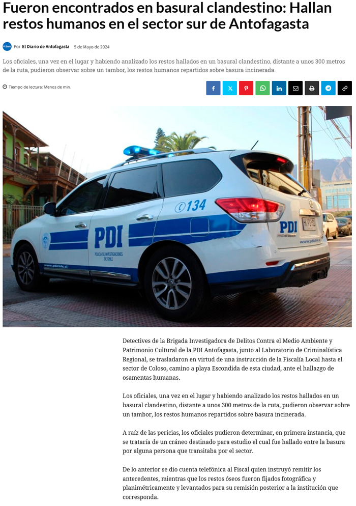 Investigan hallazgo de restos humanos en el sector de Coloso al extremo sur de Antofagasta - (elamerica)