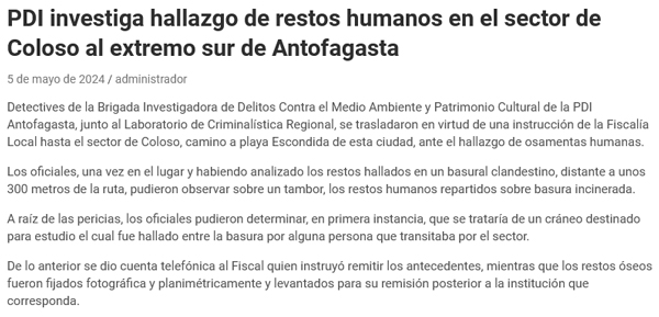 Investigan hallazgo de restos humanos en el sector Coloso de Antofagasta - (elreferente.cl)