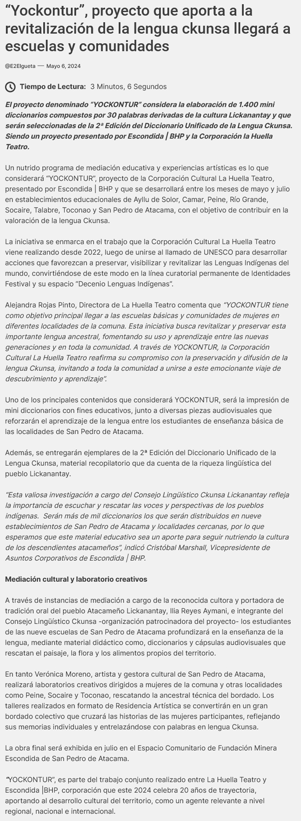 “Yockontur”, proyecto que aporta a la revitalización de la lengua ckunsa llegará a escuelas y comunidades de San Pedro de Atacama - (regionesnoticias.cl)