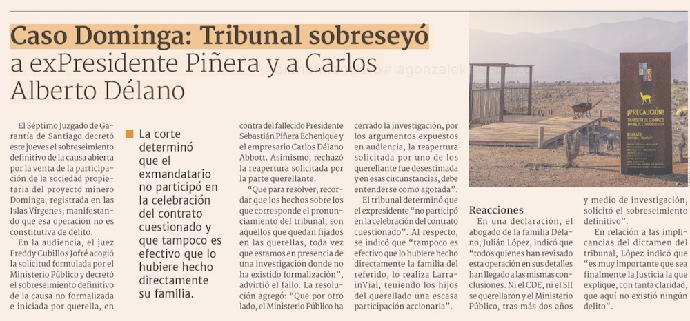 "No es constitutiva de delito": Tribunal sobresee definitivamente causa por la venta de Minera Dominga - (Pulso)