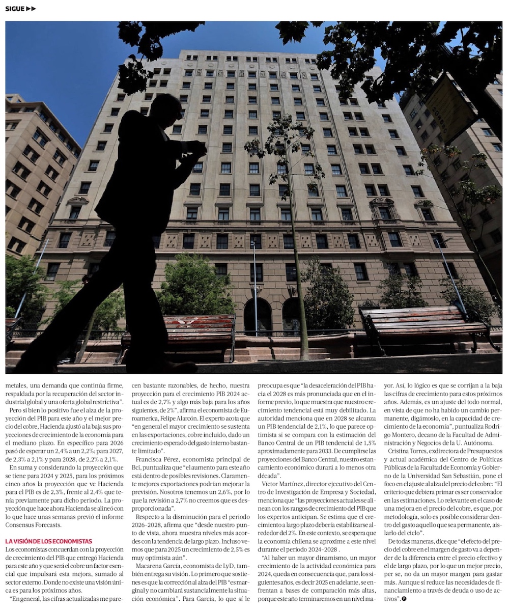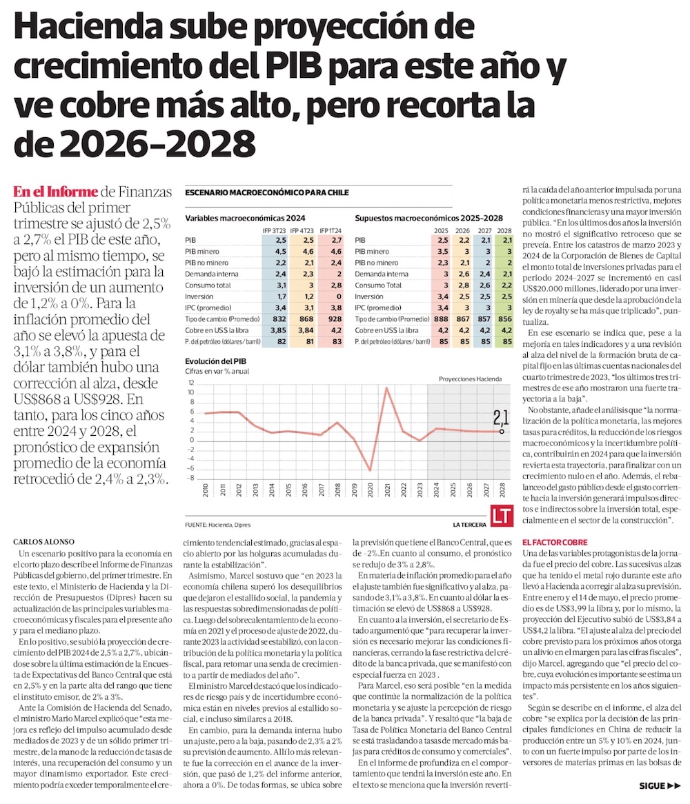 Gobierno corrige al alza la proyección de crecimiento para 2024 y empeora su estimación inflacionaria - (El Mercurio de Santiago)