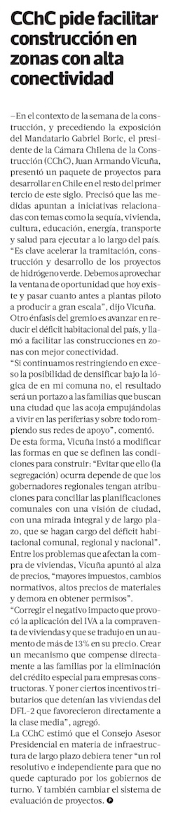 Presidente y CChC analizan proyectos y Boric vuelve a emplazar a la banca - (La Segunda)
