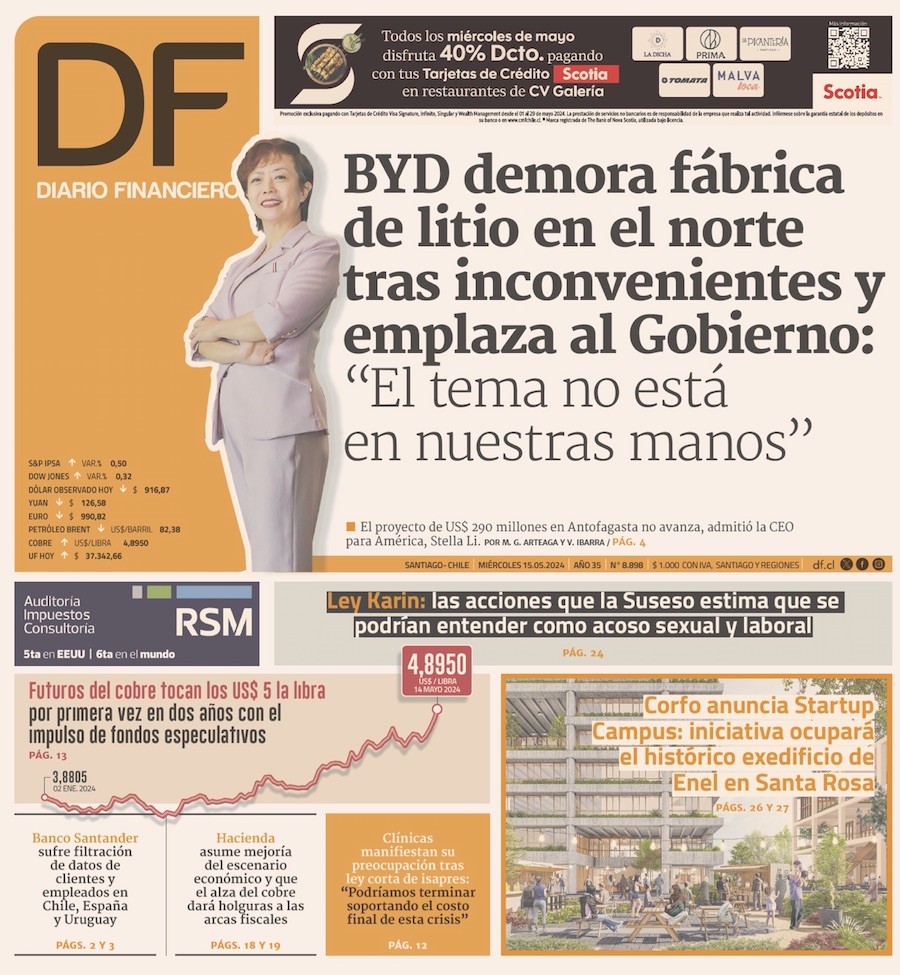 BYD pospone inicio de producción de planta de cátodos de litio en Chile por incertidumbre y Corfo solicita antecedentes - (La Tercera Online)