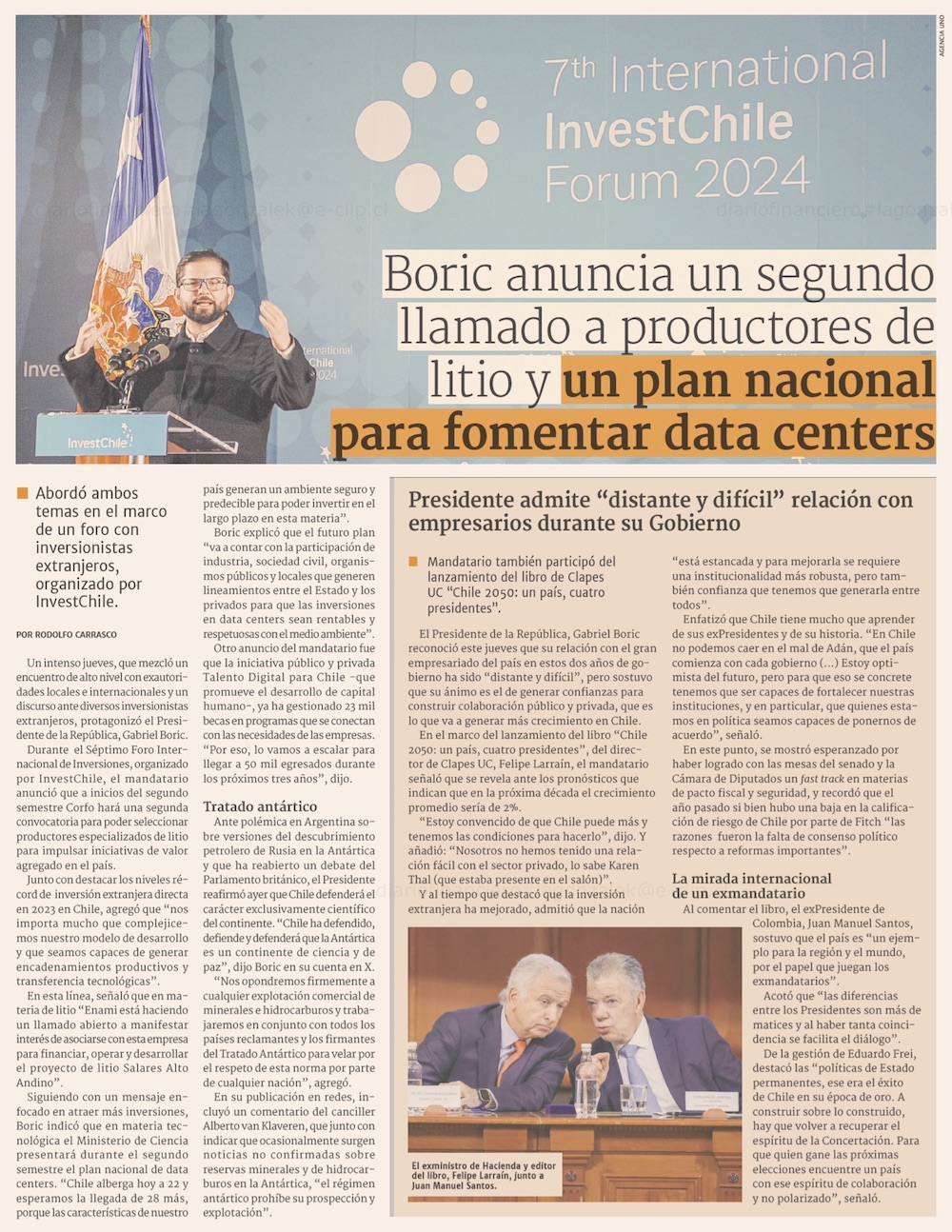 Boric anuncia nuevo llamado para que locales o extranjeros desarrollen proyectos de litio - (El DÃa)