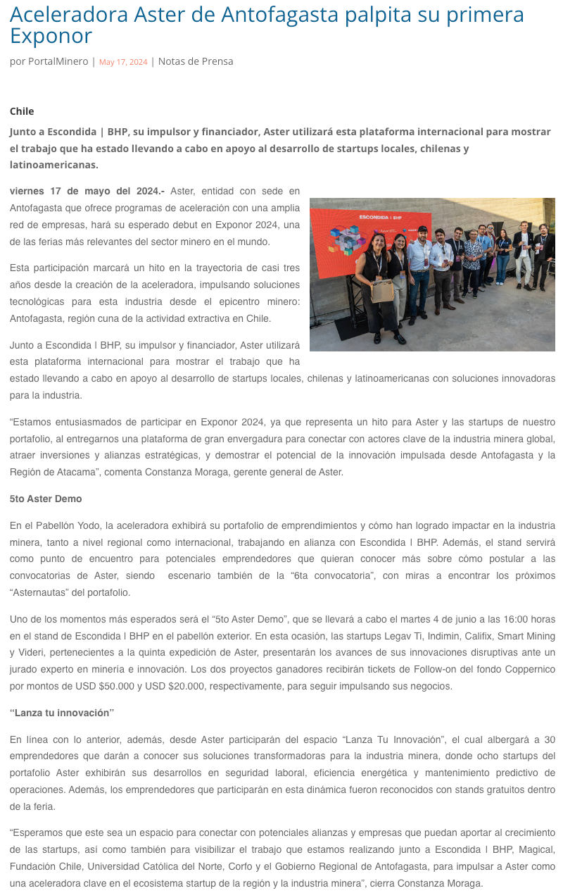 Aceleradora Aster de Antofagasta palpita su primera Exponor - (mediabanco.com)