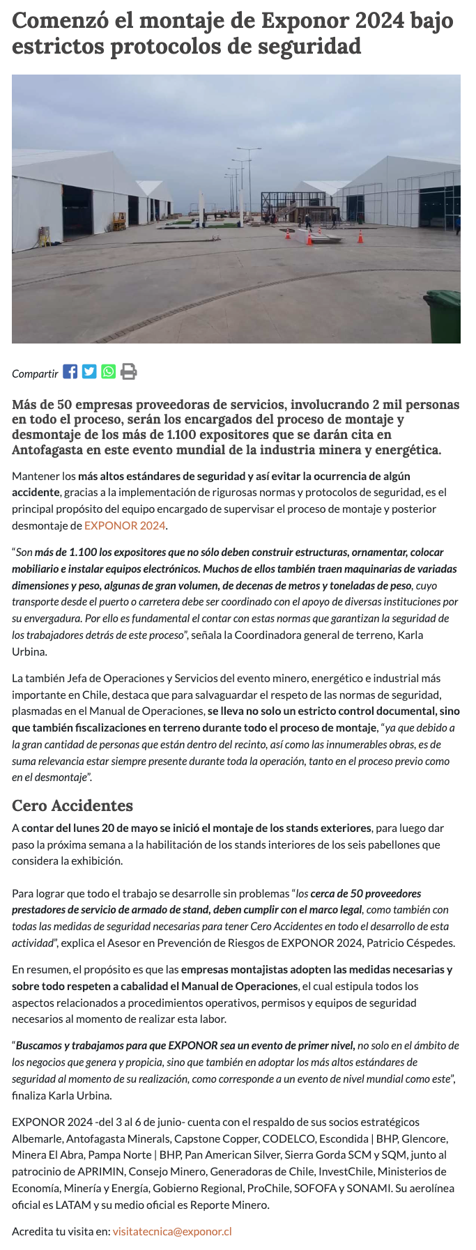 EXPONOR comenzó montaje bajo estrictos protocolos de seguridad - (radioua.cl)