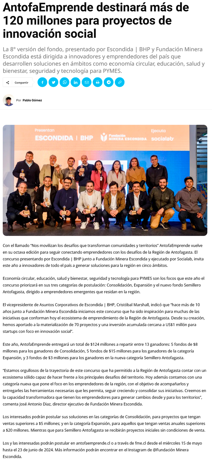 AntofaEmprende destinará más de 120 millones para proyectos de innovación social - (laquintaemprende.cl)