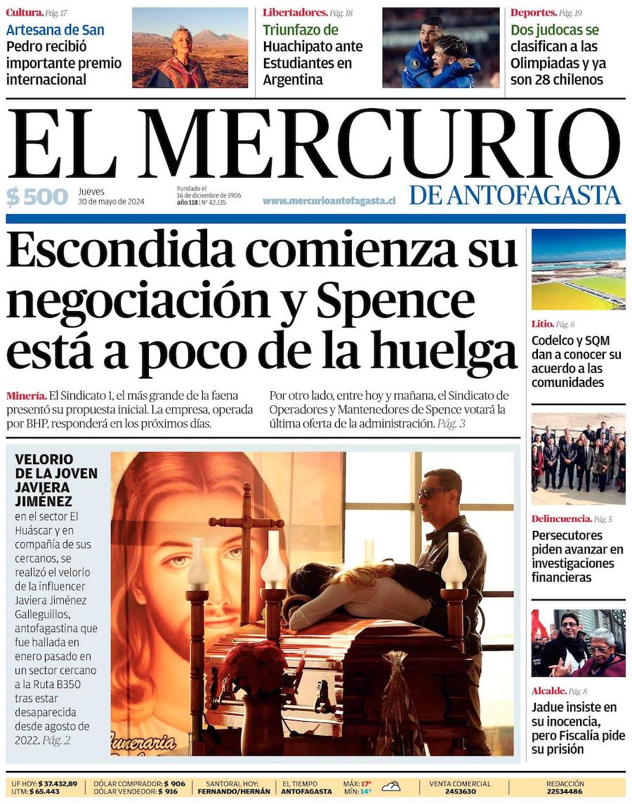 Sindicato N°1 de Escondida inicia proceso de negociación, mientras Spence se acercaría a la huelga - (El Mercurio de Calama)