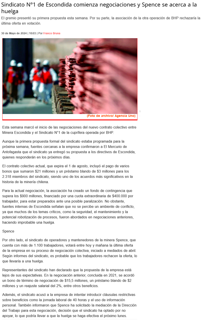 Sindicato de operadores y mantenedores de Spence podrían iniciar huelga - (antofagasta.tv)