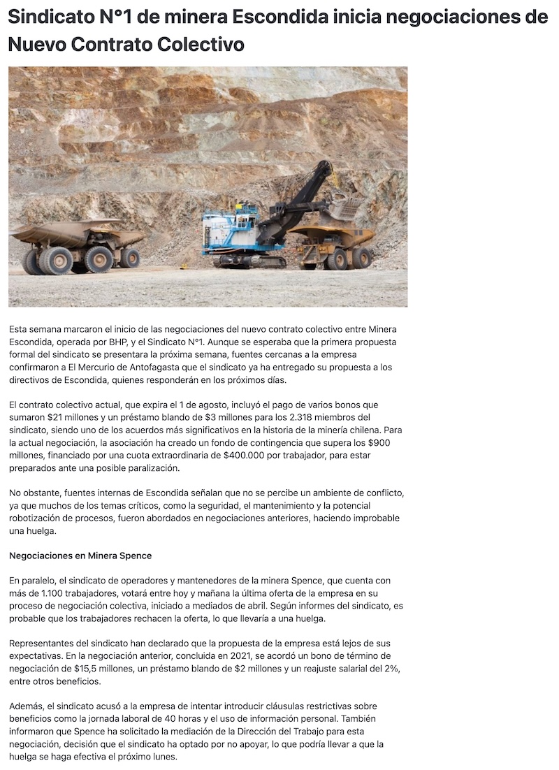 Sindicato N°1 de Escondida comienza negociaciones y Spence se acerca a la huelga - (soyantofagasta)