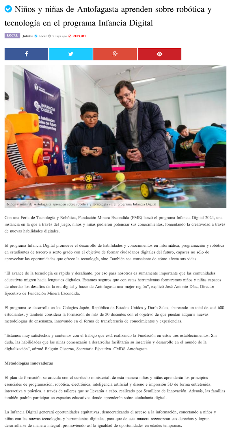 Niños y niñas de Antofagasta aprenden sobre robótica y tecnología en programa Infancia Digital - (madero.cl)