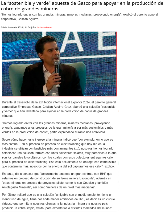La “sostenible y verde” apuesta de Gasco para apoyar en la producción de cobre de grandes mineras - (soychile)