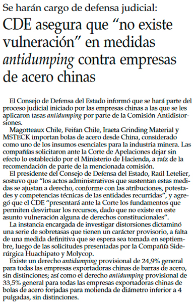 CDE arremete contra Magotteaux y defiende medidas antidumping por acero chino - (Pulso)