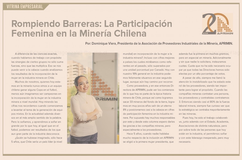 Los pasos para seguir sumando mujeres a la fuerza laboral minera - (Diario Financiero)