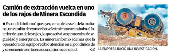 Camión de extracción vuelca en uno de los rajos de Minera Escondida - (El Mercurio de Antofagasta)