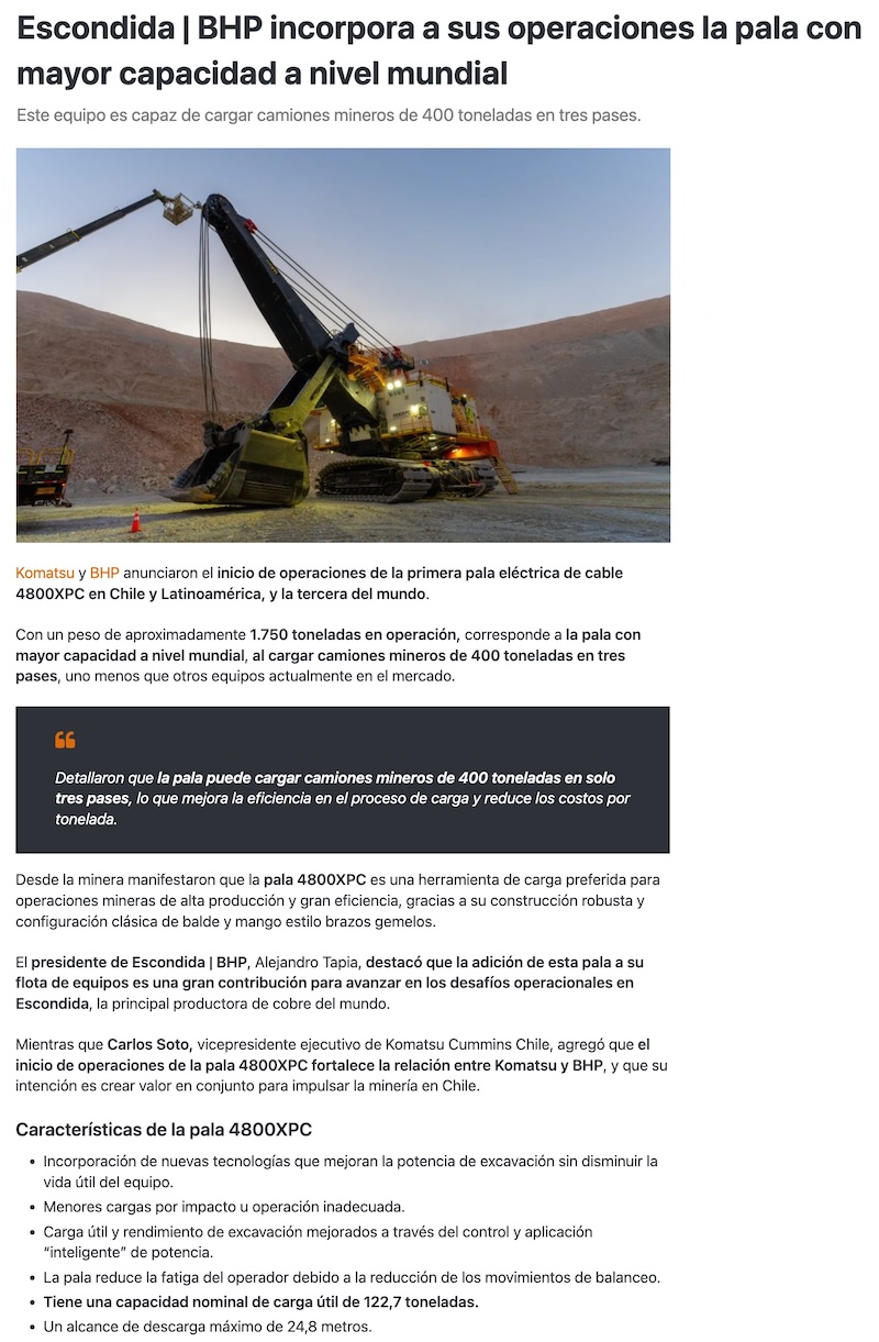 La pala con mayor capacidad del mercado llega a Chile - (mineriayfuturo.cl)