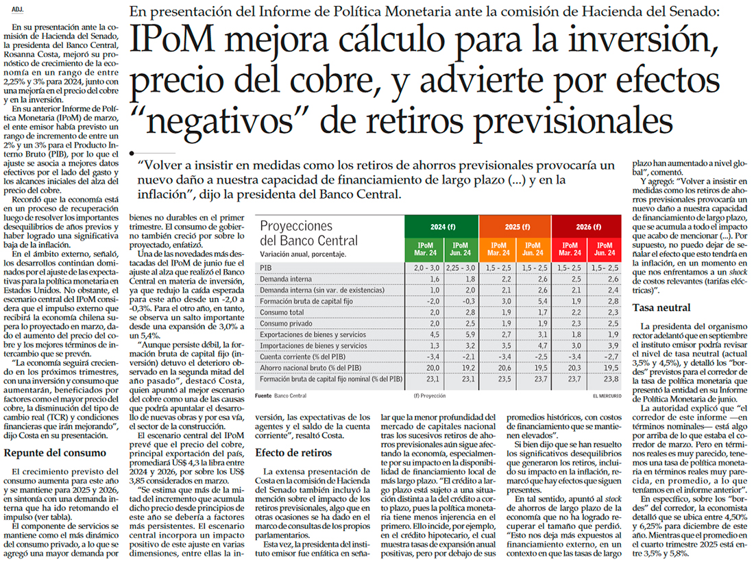 Dudas del mercado sobre la inversión marcan el nuevo escenario de proyecciones que dejó el IPoM - (Diario Financiero)