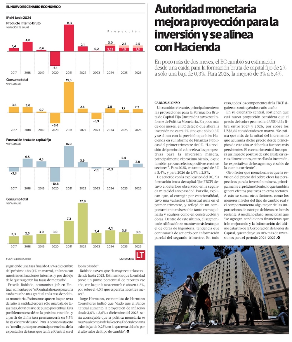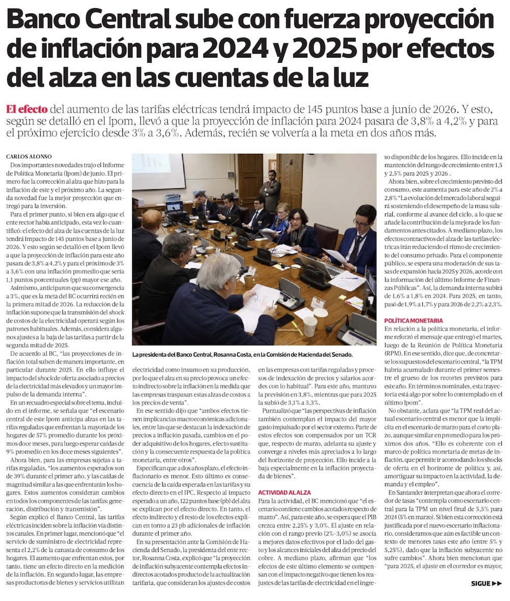 BC se distancia del Gobierno ante repunte “importante” de la inflación y aplaza hasta el 2026 retorno a la meta - (El Mercurio de Santiago)