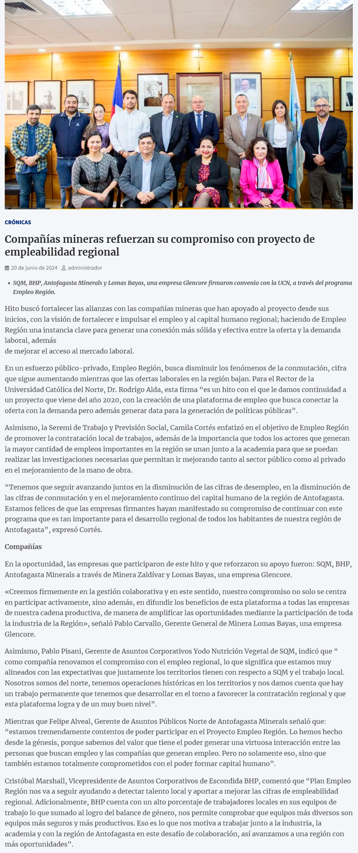 Mineras refuerzan su compromiso con proyecto de empleabilidad regional - (noticias.ucn.cl)