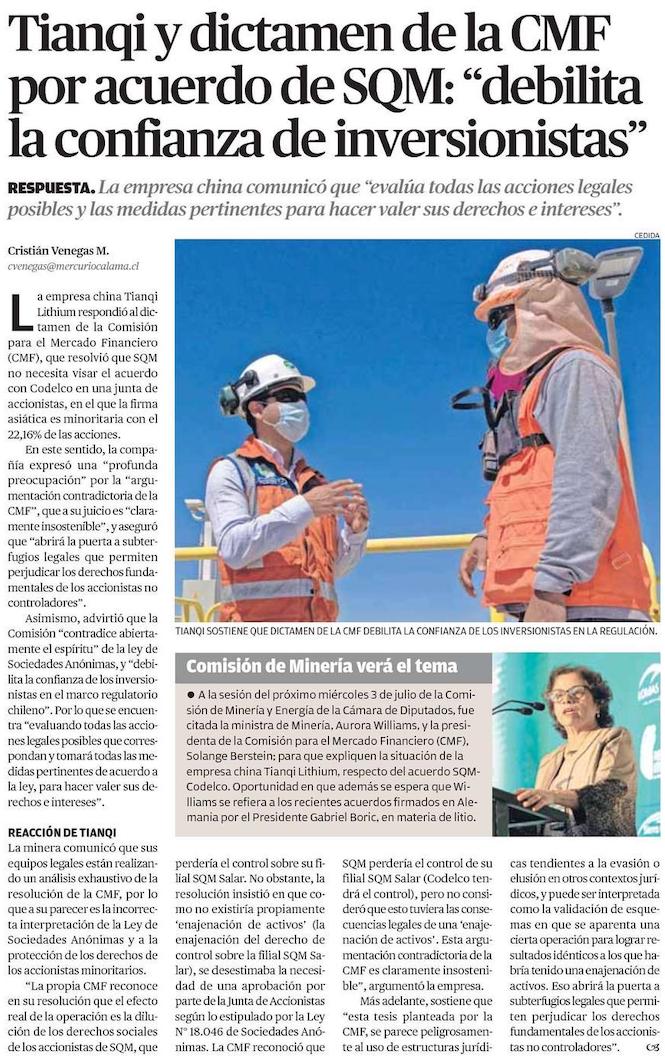 Tianqi apunta sus dardos contra la CMF - (El Mercurio de Santiago)