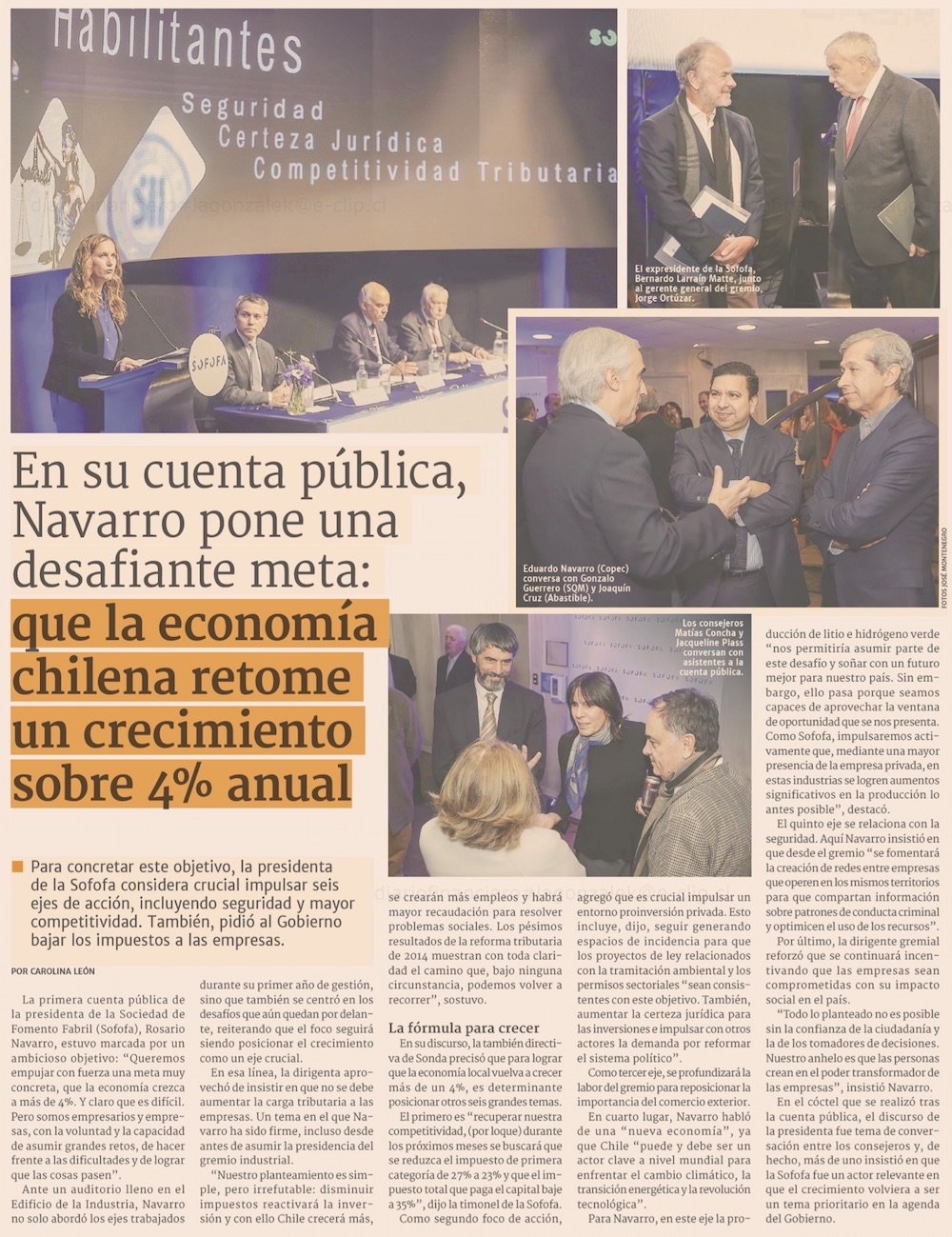 Primera cuenta pública de Rosario Navarro al mando de la SOFOFA: pone foco en una expansión del pib superior a 4% - (El Mercurio de Santiago)