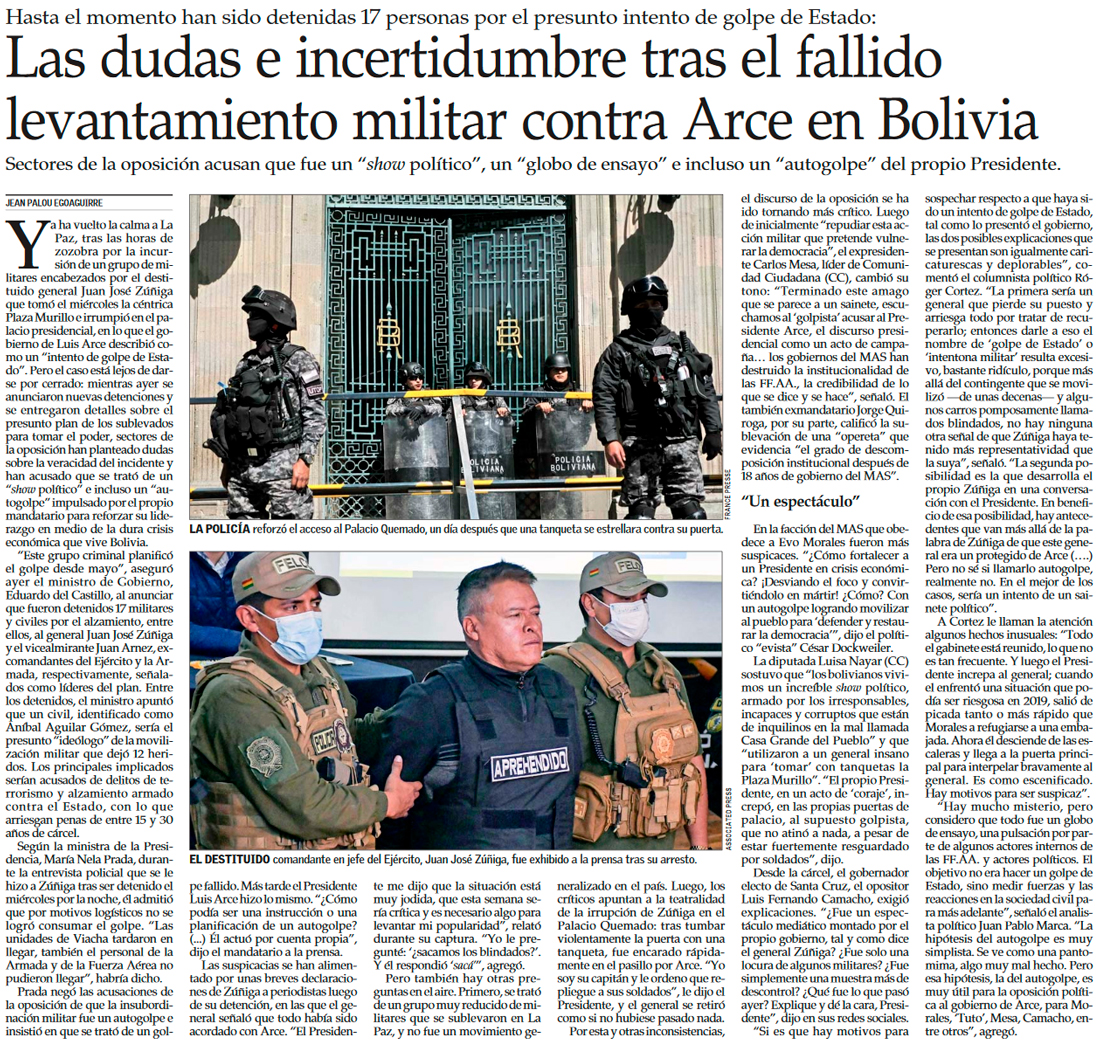 ¿Golpe fallido o autogolpe? Las dudas y detalles de las tres horas de zozobra que vivió Bolivia por el alzamiento militar - (La Tercera)