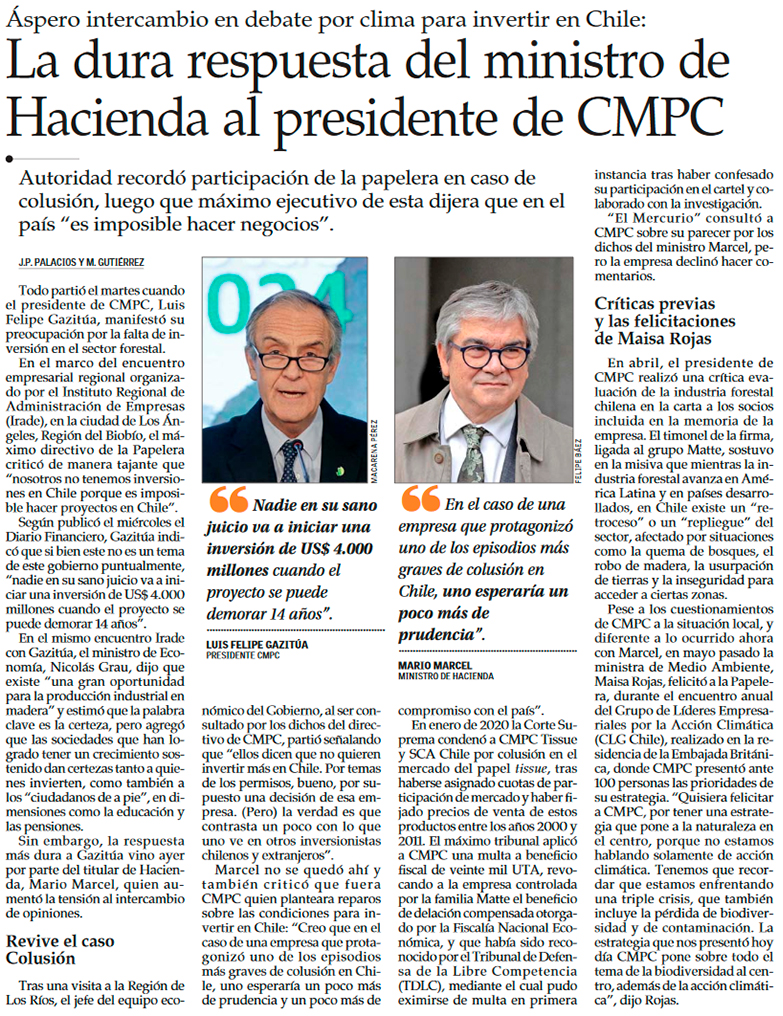 La dura arremetida de Mario Marcel contra CMPC: pide prudencia y les recuerda el caso colusión - (Pulso)