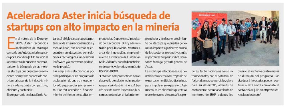 Nueva oportunidad para Startups Mineras: Aster abre convocatoria para la sexta «Expedición» - (mineriayfuturo.cl)