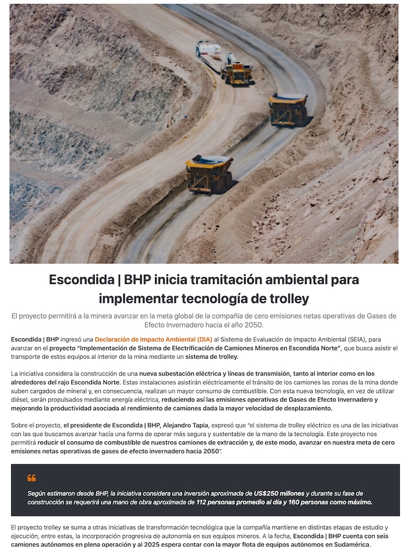 Escondida | BHP inicia tramitación ambiental para implementar sistema de transporte de camiones en base a trolley eléctrico - (elperiodista.cl)