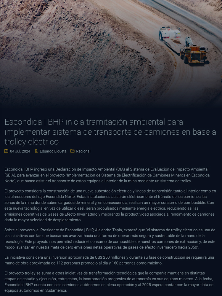 Escondida | BHP inicia tramitación ambiental para implementar tecnología de trolley - (Maray Online)
