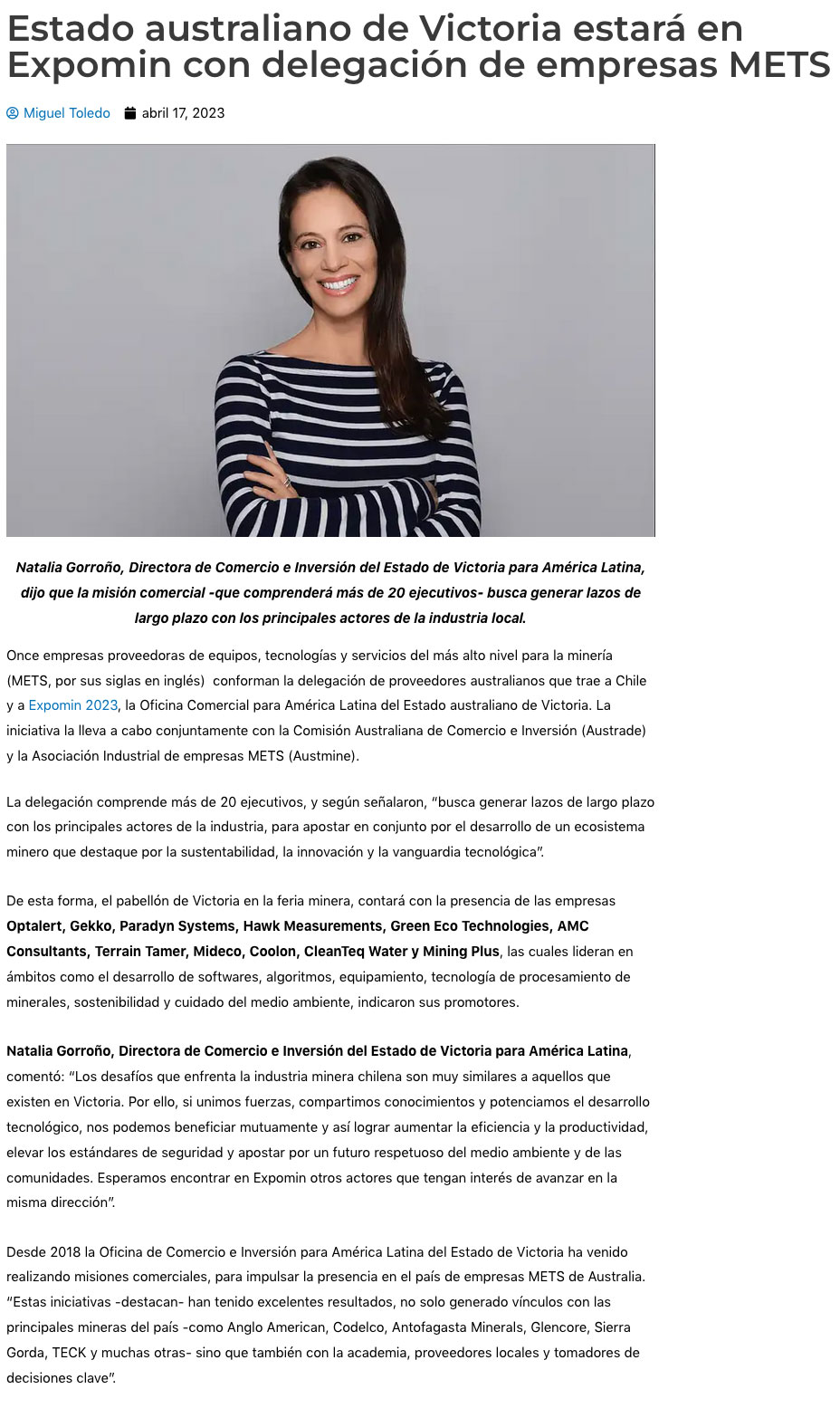 Delegación australiana aterriza con 11 empresas en Expomin 2023 - (portalminero)