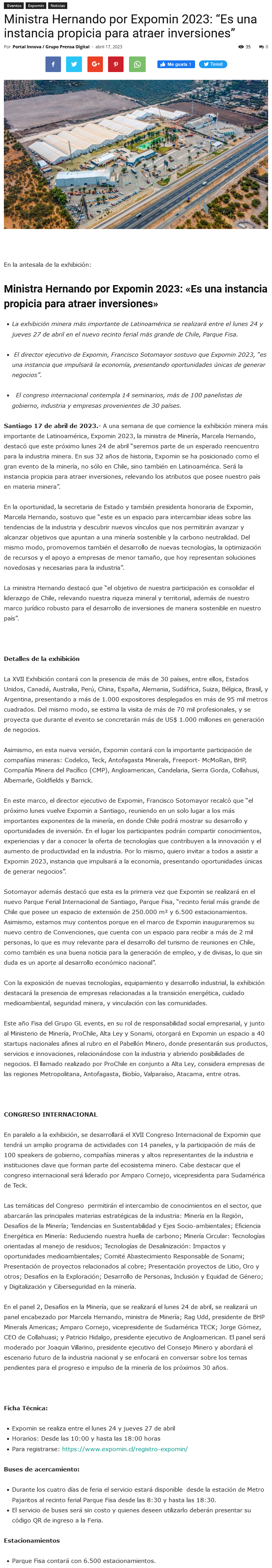 En la antesala de la exhibición: Ministra Hernando por Expomin 2023: “Es una instancia propicia para atraer inversiones” - (mvcomunicaciones.cl)