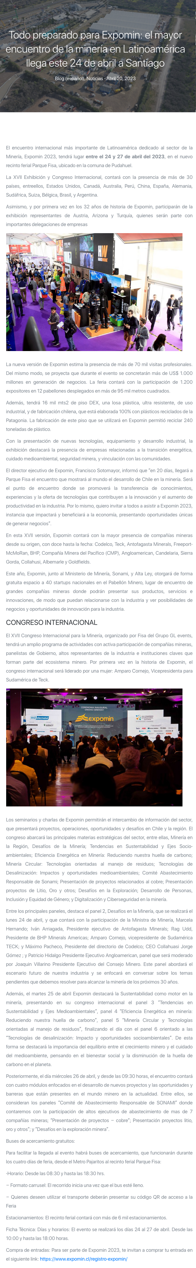 Este lunes comienza Expomin 2023 el encuentro minero más importante de Latinoamérica - (prensaeventos.cl)