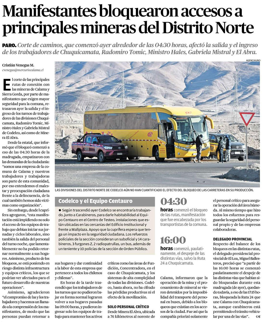Tras masiva movilización ciudadana, Calama se declara en estado de alerta - (El Mercurio de Calama)