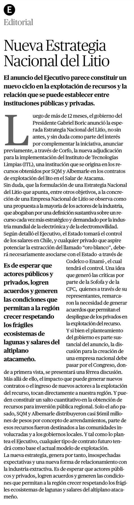 Estrategia Nacional del Litio: una definición necesaria - (El Diario de Atacama)