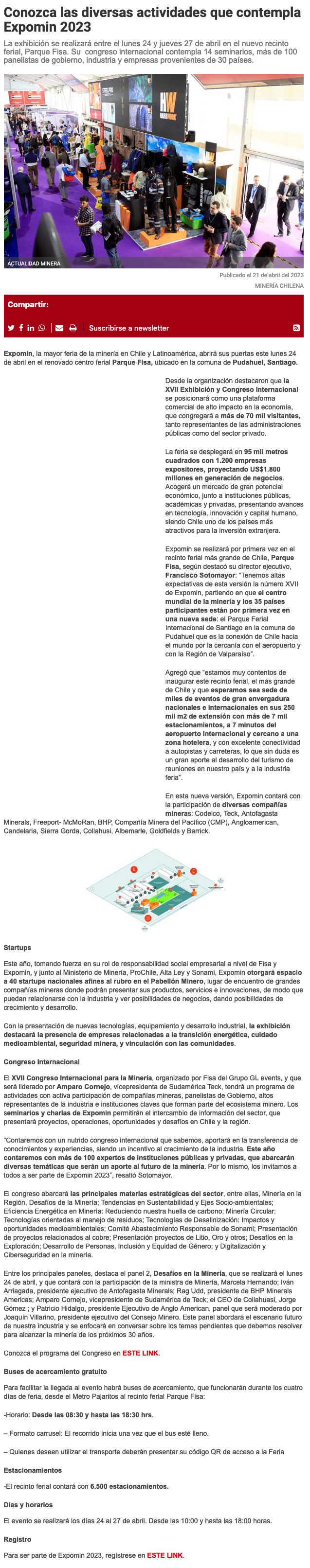 Este lunes comienza Expomin 2023 el encuentro minero más importante de Latinoamérica - (prensaeventos.cl)