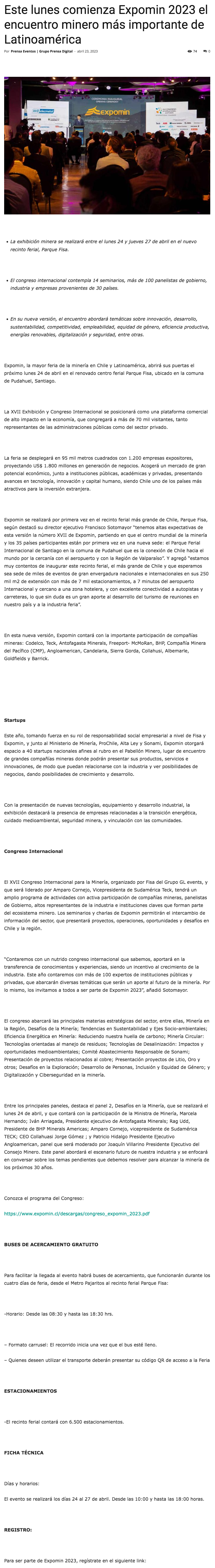 Conozca las diversas actividades que contempla Expomin 2023 - (Nostálgica Online)
