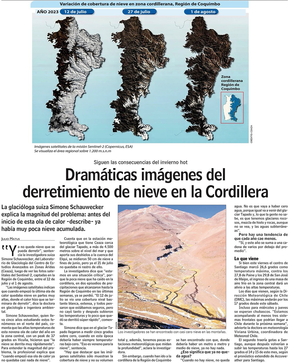 Estudio alerta sobre principales factores del derretimiento de glaciares en los Andes - (El Mercurio de Valparaíso)