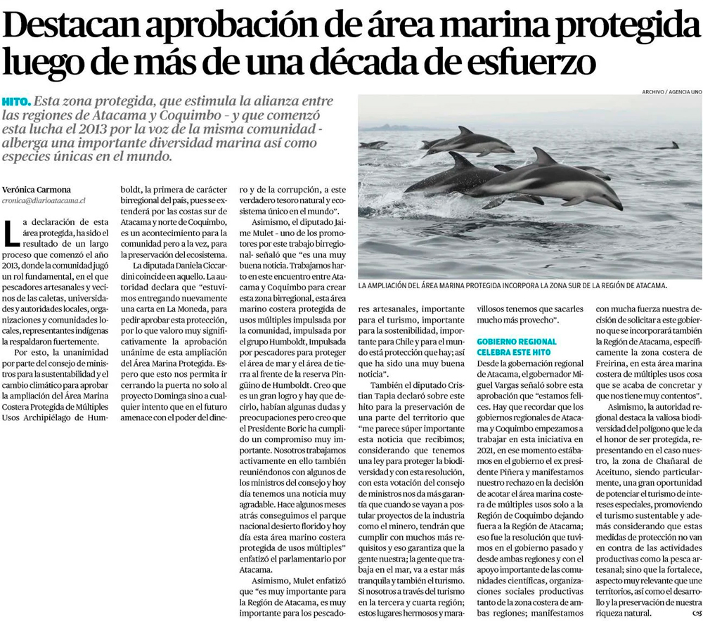 La primera birregional de Chile: Consejo de Ministros aprueba la ampliación del Área Marina Costera Protegida Archipiélago de Humboldt - (El Diario de Atacama)