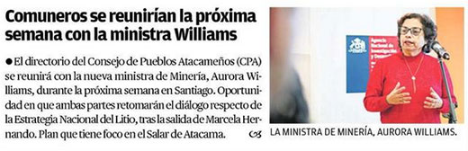 Consejo de Pueblos se reunirá con la ministra de Minería este martes por Estrategia del Litio - (El Mercurio de Calama)