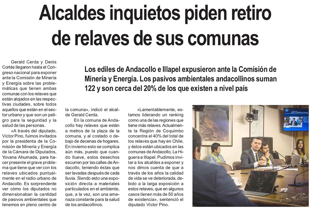 Alcaldes de Andacollo e Illapel piden retiros de relaves de sus comunas ante cámara de diputados - (Semanario Tiempo)