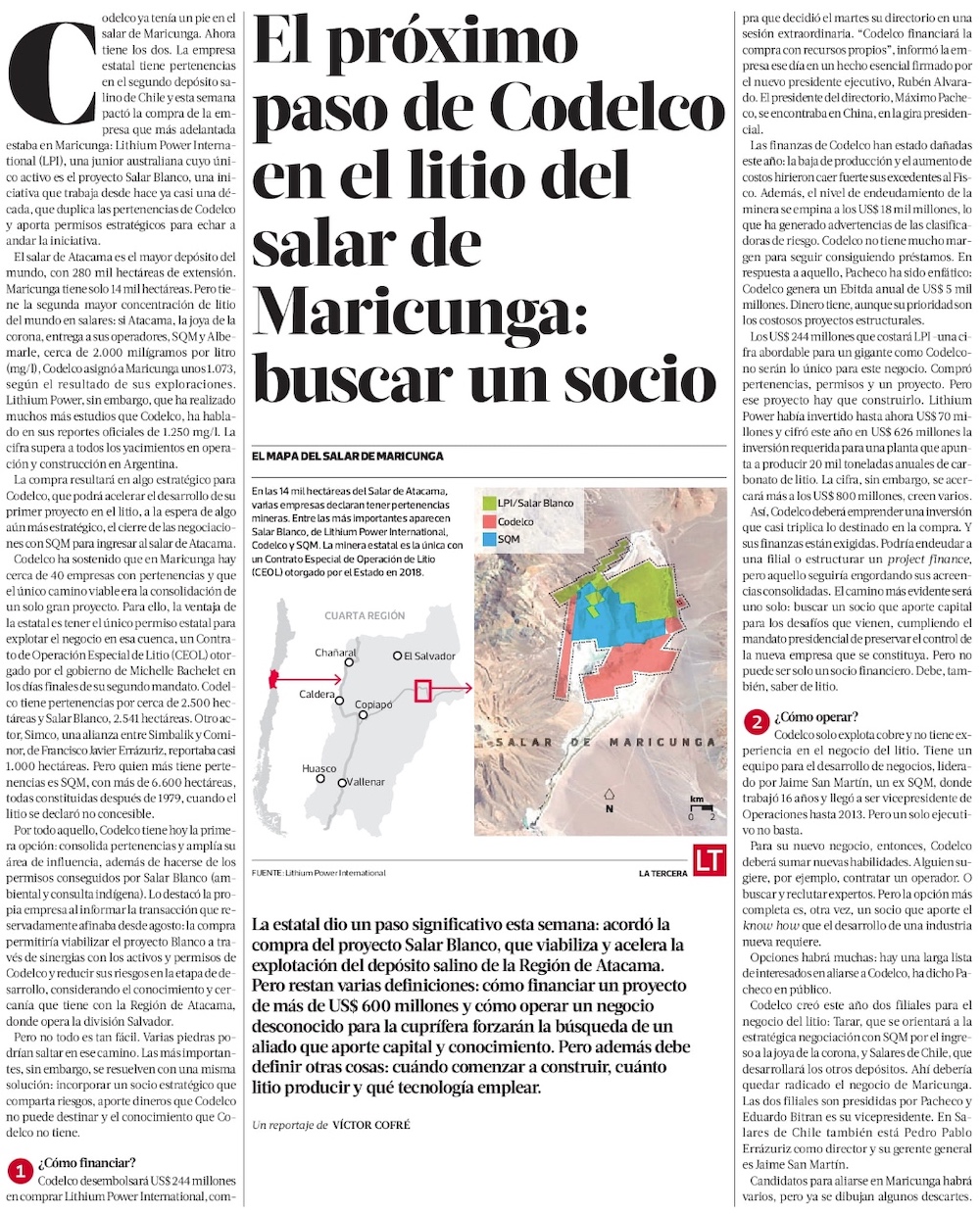 ¿Es acertado que Codelco adquiera una empresa dueña de un proyecto de litio en el salar de Maricunga? - (La Tercera)