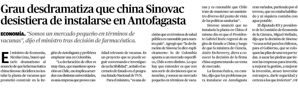 Sinovac cambia sus planes de vacunas en Chile - (La Tercera)