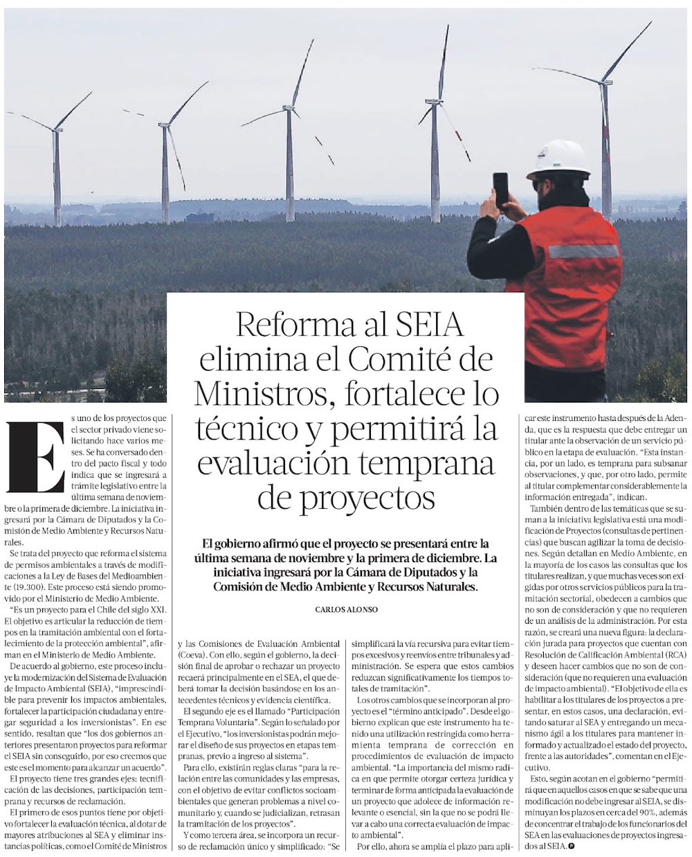 Aprueban proyecto que busca más eficiencia del SEIA - (El Mercurio de Santiago)