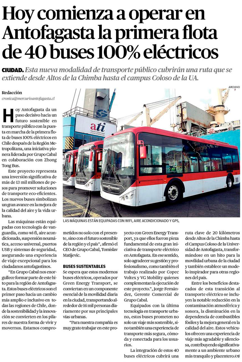 Antofagasta a la vanguardia: con éxito comenzó recorrido de buses eléctricos - (El Mercurio de Antofagasta)