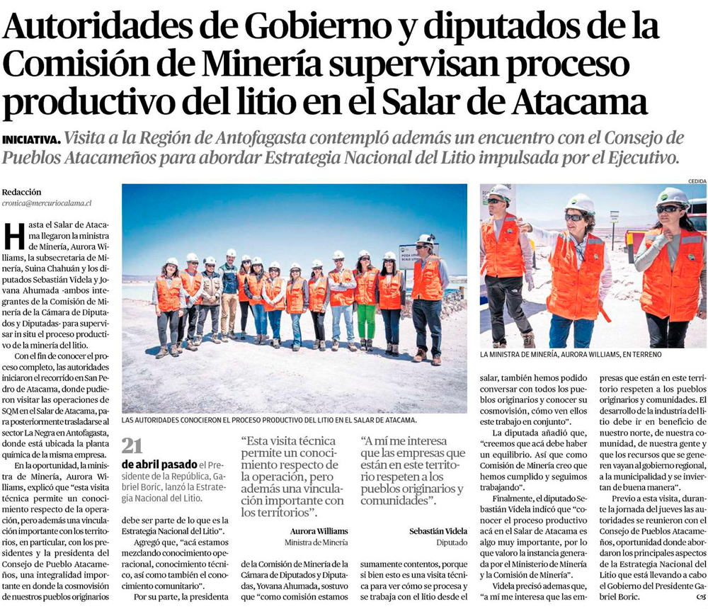 Autoridades de Gobierno y diputados de la Comisión de Minería supervisan proceso productivo de litio en Salar de Atacama - (elamerica)