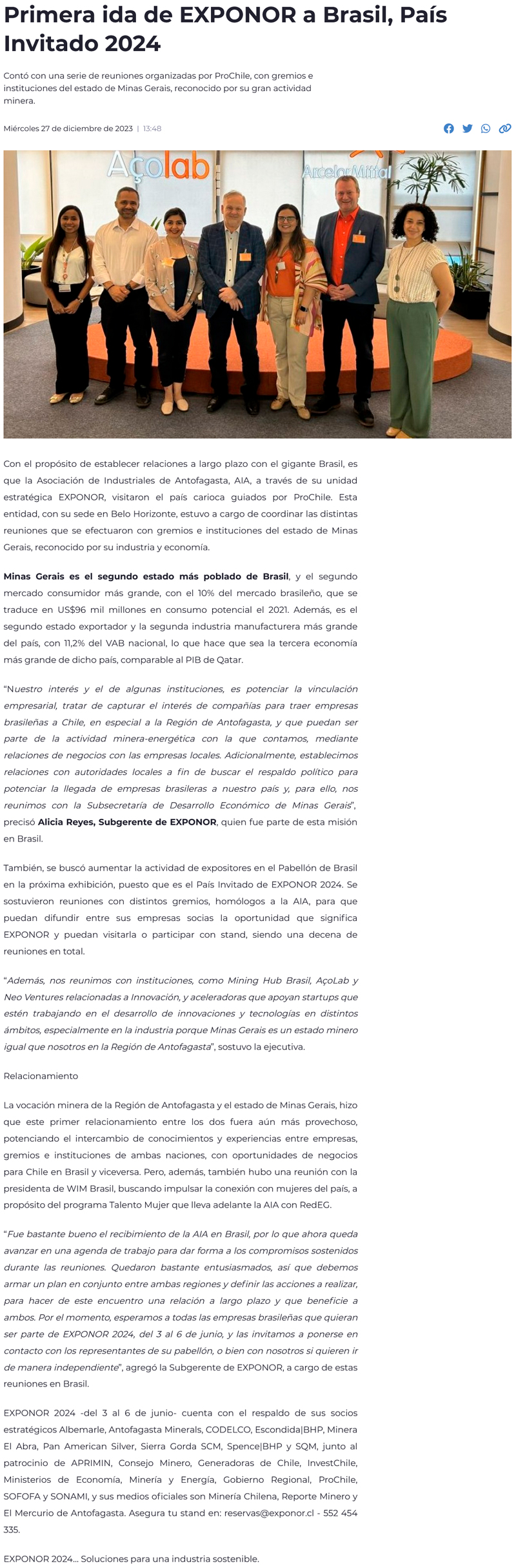 Primera misión de Exponor en Brasil, país invitado 2024 - (norteyenegia.cl)