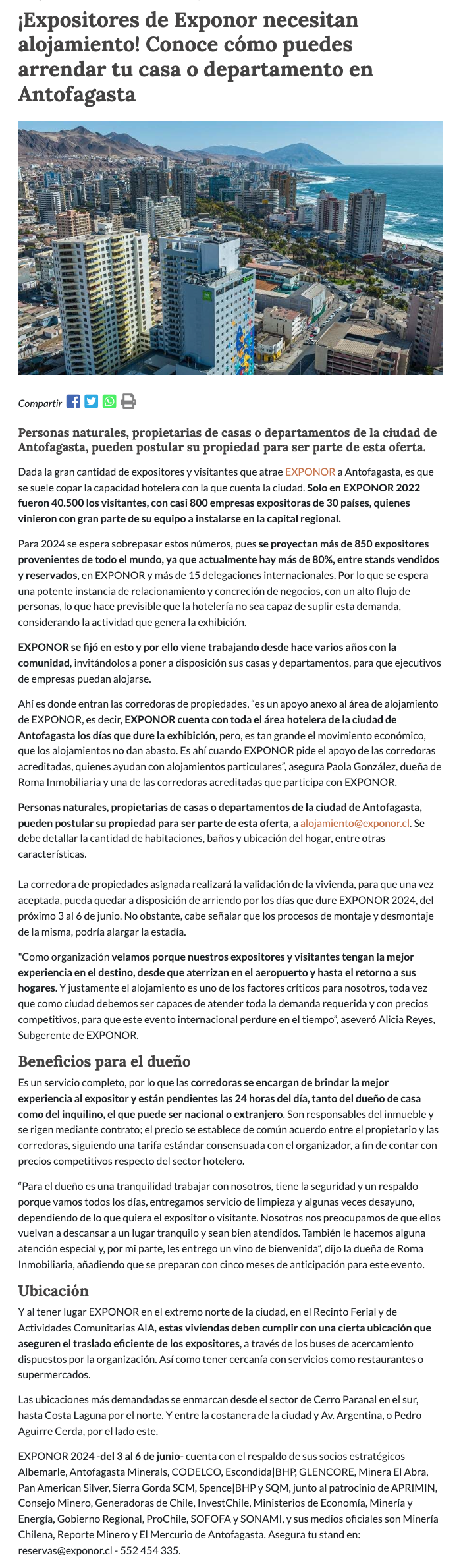 Exponor busca aumentar capacidad hotelera y suma departamentos y casas a su oferta - (norteyenegia.cl)
