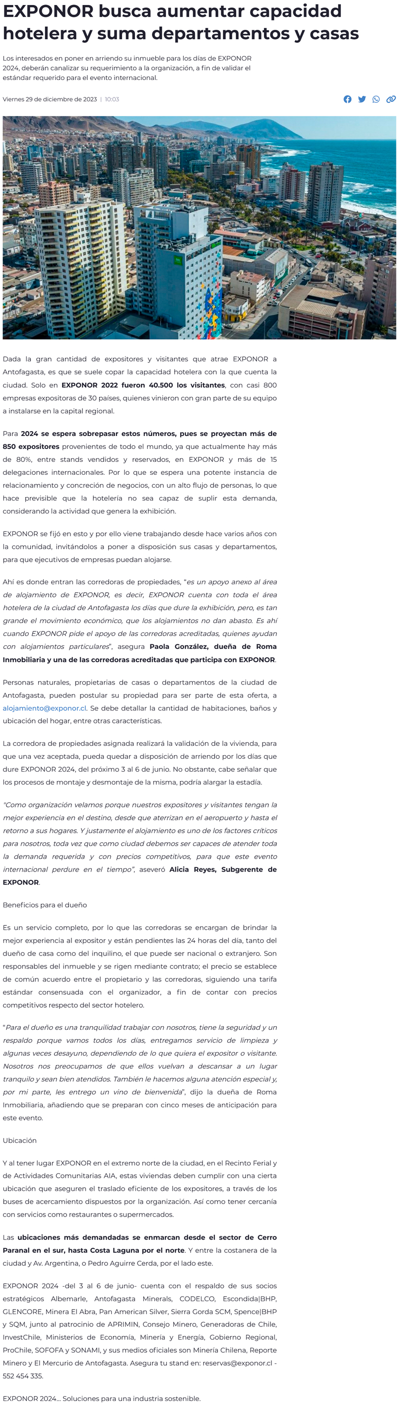 ¡Expositores de Exponor necesitan alojamiento! Conoce cómo puedes arrendar tu casa o departamento en Antofagasta - (reporteminero)